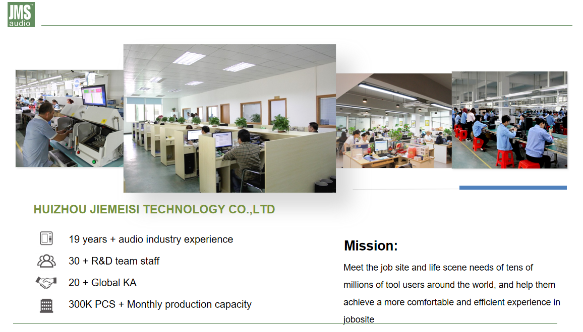 James(Jiemeisi) Audio Technology Co., Ltd was founded in 2005, and its predecessor is Sage Human Electronics International Co., Ltd, which is a leading audio technology group that offer one-stop solutions and services.